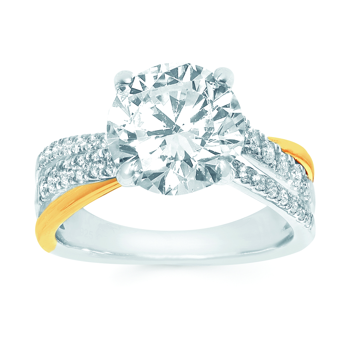 Engagement Ring Modern Bridal: 3/8 Ctw. Diamond Semi Mount shown with 3 Ct. Round Center Diamond in 14K Gold
